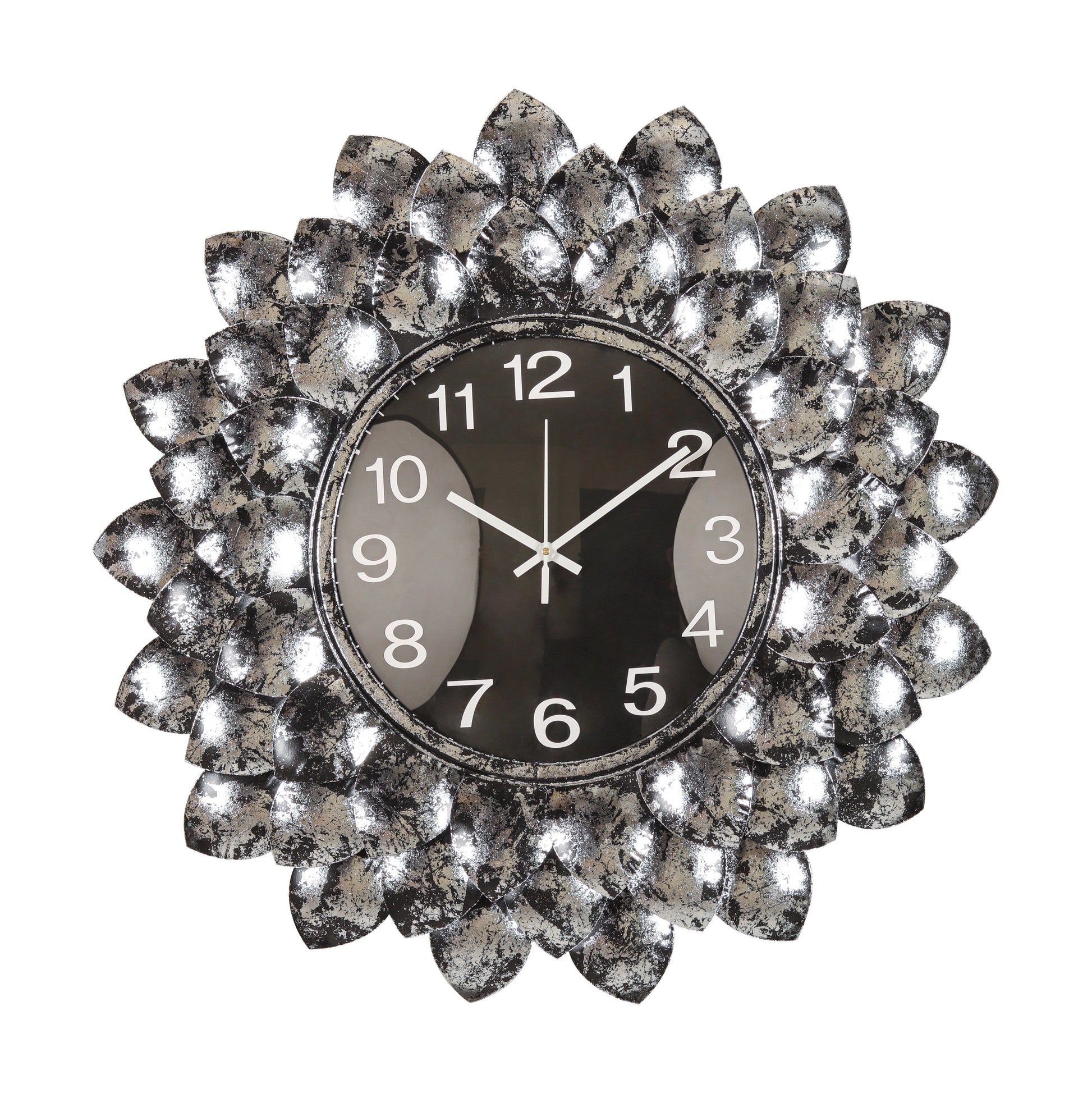 This piece features a gradient finish that fades from midnight black to misty silver, echoing the way fog unveils hidden forms. The petals surrounding the mirror face are shaped to evoke movement and depth, turning time into a visual poem.